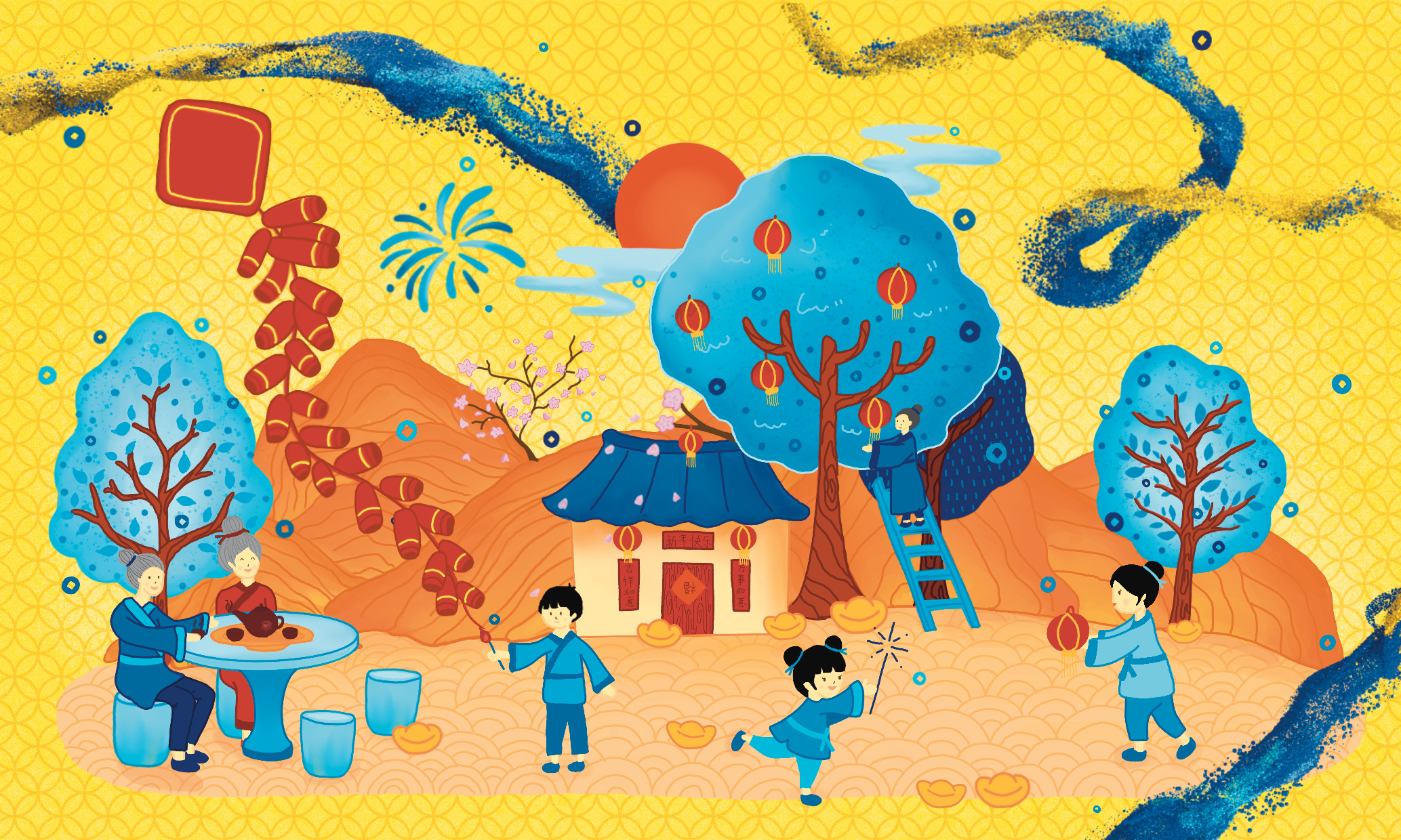 This artwork captures the joy and unity of Chinese New Year, highlighting its cultural significance. Fireworks symbolize prosperity and luck, while red firecrackers invite good fortune. The gathering of family reflects the importance of togetherness and shared joy. By preserving these traditions, the artwork ensures their emotional and cultural essence continues to inspire future generations.